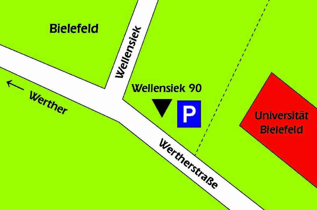 aus Richtung Bielefeld - Dornberg / Werther Westf.: fahren Sie auf der Wertherstrasse Richtung Bielefeld-Innenstadt - bis zum Ortsschild Bi-Schildesche - (kurz vor der Universität) - unser Büro liegt auf der linken Seite.